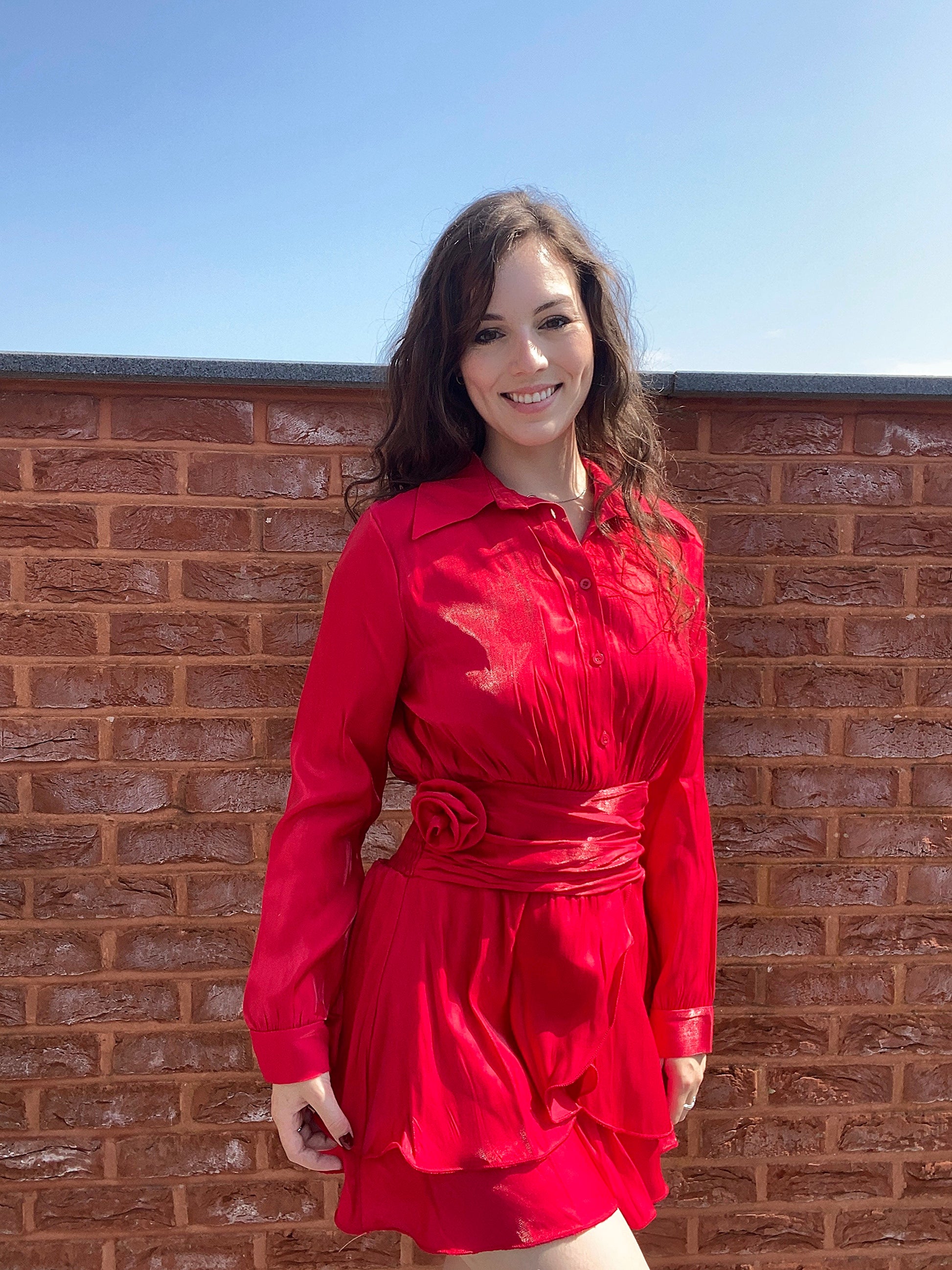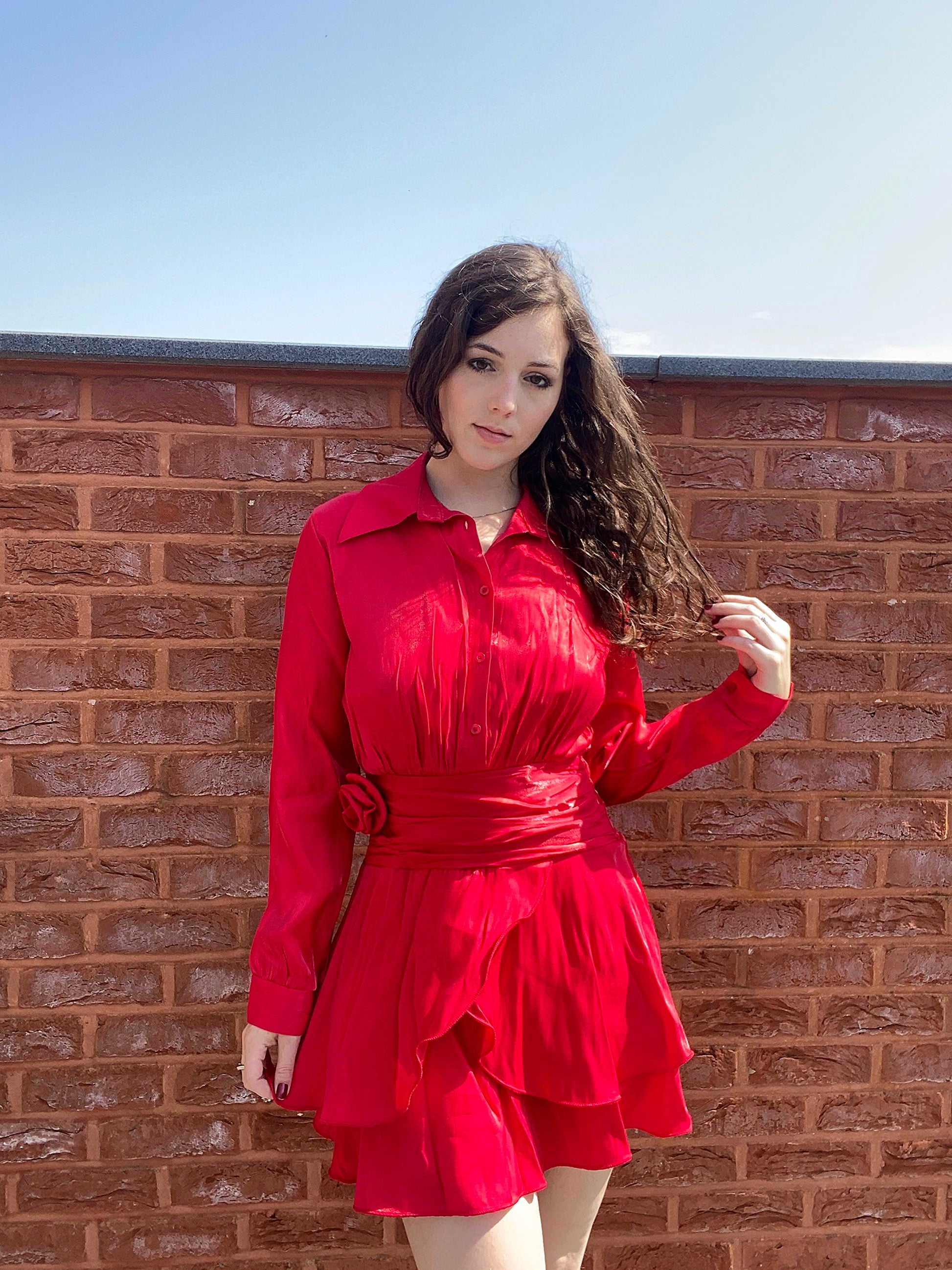 Robe chemise irisé rouge avec fleur amovible 🌹